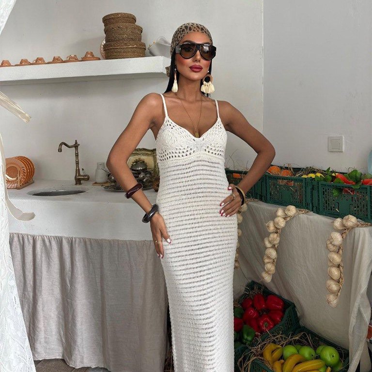 فستان تريكو قطعتين ابيض